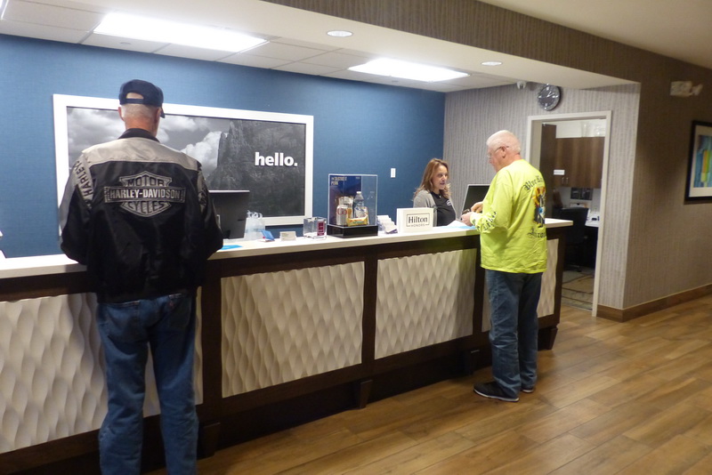 As the bikers starting arriving I took pictures of them and their bikes. Here are a few pictures of them arriving and hanging around the lobby and pool area.: