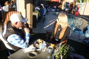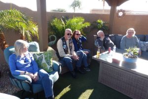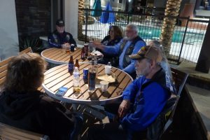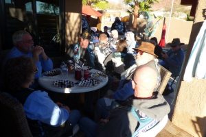 After a wonderful afternoon at the Soto house everyone headed back to the Hampton Inn at their own pace. ON the last evening of our trip everyone got together in the restaurant and outside lounge area for some last chatting and our last 50/50 for the trip. How fitting could it have been but the last winner of our 50/50 went to Theresa Soto. Hear are photos of our last evening together: