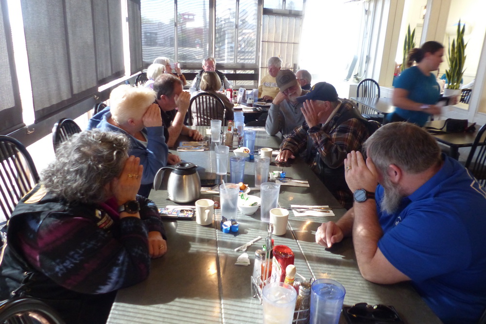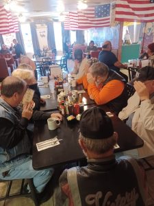 On Saturday 1/11/25 we had our incognito breakfast ride at Jethro’s Cafe & Tavern on East Broadway. As you can see the members didn’t want their faces exposed for a change. However I did recognize a few of the members. At breakfast were Steve & Vicky, Robi & Bear, Alan & Susan, Ken, yours truly, and a few others.